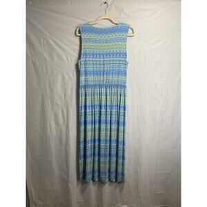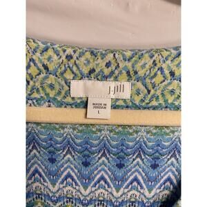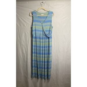 J.Jill Womens Dress Large Blue Maxi Faux Wrap V Neck Pullover Stretch Geometric