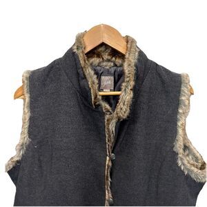 J.Jill Womens Faux Fur Lined Vest Gray Boho Western Button Front Large comfort