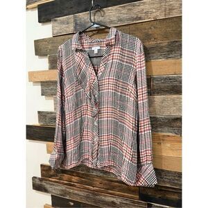 J. Jill Women's Glen Check Plaid Ruffled Button-Front Blouse Sz M