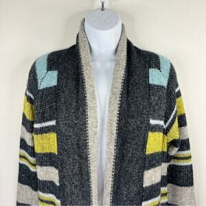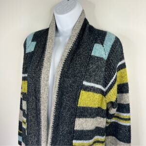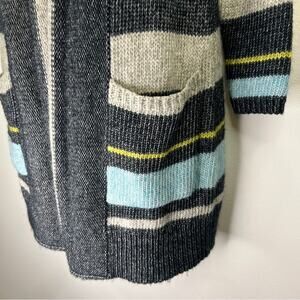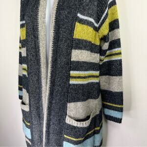J.Jill Women's Gray Blue Green Striped Long Wrap Cardigan Sweater Size XS Duster