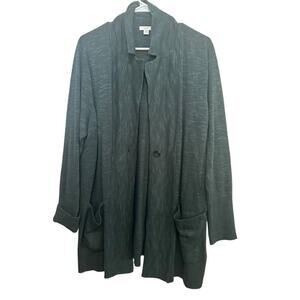 J.Jill Women's Green Textured Knit Pockets Longline Cardigan Sweater Size large