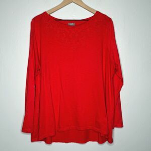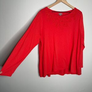 J.Jill Womens Knit Top XL Red Shirt Embroidered Scoop Basics Cotton Casual