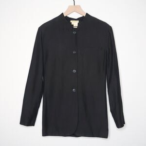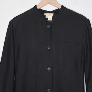 J.Jill Womens Long Blazer Jacket Size 10 Black Button Up Silk Linen Blend Office