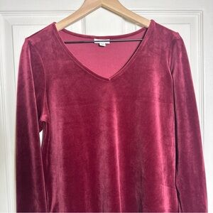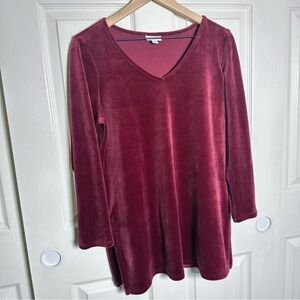 J.Jill Womens Medium Petite Velvet Tunic Long Sleeve Top Blouse Holiday Red Soft