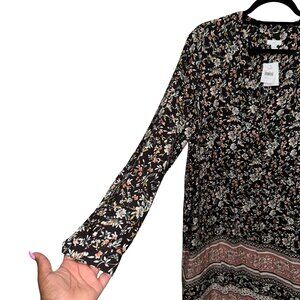J.Jill Women's Midnite Floral Long Sleeve Cottage Core/Boho Dress Sz L NWT