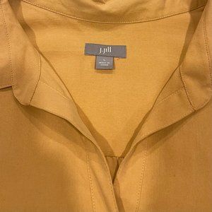 Women's size L. J.Jill 100% silk button-up shirt. Peach colored. Long sleeved, collared shirt. Buttons at cuff. 1 small scuff at left arm, see photos for details. Excellent condition otherwise. Take a look and make me an offer!
