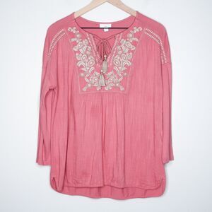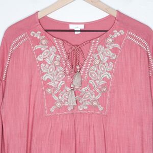 J.Jill Womens Shirt Size Small Pink Embroidered Boho Floral Casual