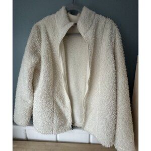 J.Jill Women's Size M Cozy Ivory Faux Sherpa Fuzzy Fleece Zip Up Jacket NWOT
