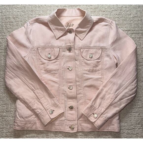 J.Jill Women’s Small Linen Cotton Jacket Pink Button Front Lightweight Layering