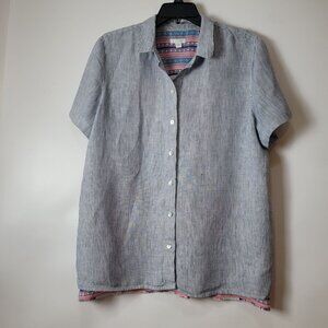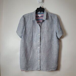 J.Jill Womens Striped Linen Blend Button-Up Short Sleeve Shirt With Floral & Geo