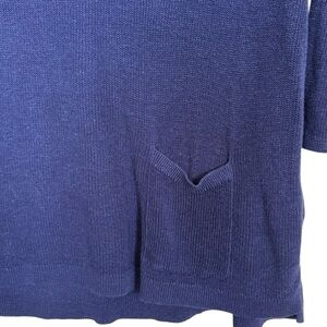 J.Jill Women’s Sz LP Blue Linen Blend Pullover One Pocket 3/4 Sleeve Knit Top
