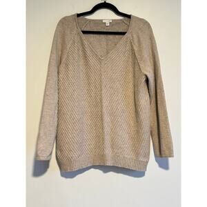J.Jill Womens V-Neck Cotton Linen Bkend Sweater Beige Minimalist Basic SIZE L