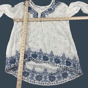 J.Jill Womens White & Blue Embroidered Tunic Top XS Boho Blouse