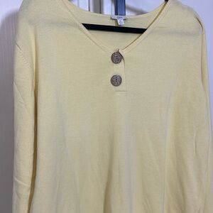 J.Jill Women’s Yellow Long Sleeve Sweater Top Sz XL 2 Button V Neck Comfy