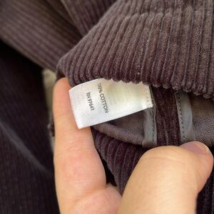 The exterior is in perfect condition and looks unworn. This coat is too cute for fall. 100% cotton and extremely comfortable while having the texture of corduroy. Wide fit, and she has pockets!