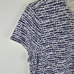 J. Jill seamed asymmetric tee in a graphic blue & white print. Breathable and soft linen/rayon blend.