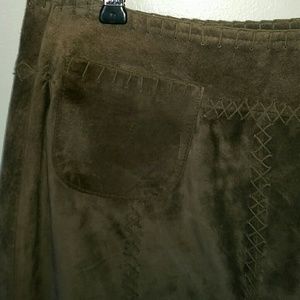 Knee length chocolate brown suede skirt with blanket stitching from J. Jill - never worn.