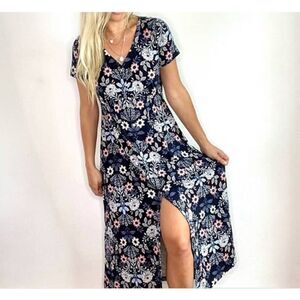 J. Jill floral jersey button down maxi dress Sz M