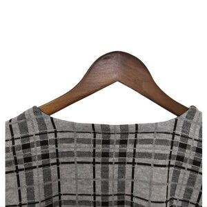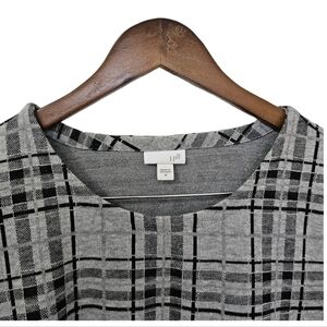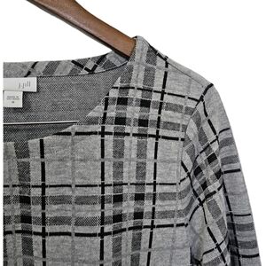 J.Jill plaid sweater round neck long sleeve grey black silver size medium