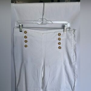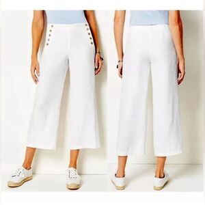 J. Jill nautical Sailor Button Wide Leg Cropped Pant 10 linen blend beachy
