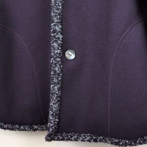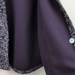 Stylish J. Jill purejill reversible button-up coat with abalone shell colored buttons, pockets, and a hood. This plush jacket features a marled dark fig textured fabric on one side, and a solid dark fig fabric trimmed in the dark fig marled fabric on the reverse. Perfect for chilly days.