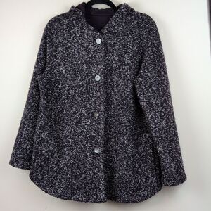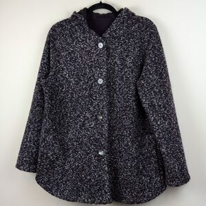 J. Jill purejill Reversible Marled Dark Fig Jacket Button Front Hooded Coat Cozy