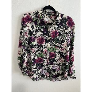 J.Jill relaxed shirttail oatmeal floral blouse button up size petite XS