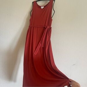 J.Jill woman's maxi sleeveless dress size M terracotta waist tie casual flowy