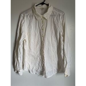 J Jill women’s 100% cotton white button front collared blouse sz L preppy career beachy