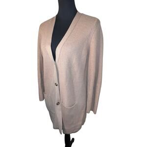 J.Jill women’s size large Petite waffle ribbed knit button front thin shawl collar pocketed Lagenlook Y2K cardigan