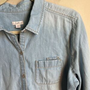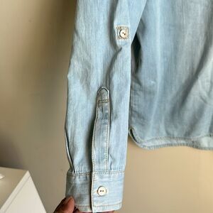 Cute & comfy denim top with long line and adjustable sleeves. In VGUC