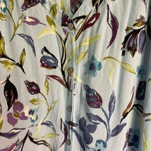 J Jill Floral Buttons Down Long Sleeves Rayon V Neck Blouse Top