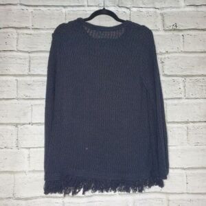 J. Jill Knit Fringe Black Long Sleeve Sweater Womens Petite Medium PM