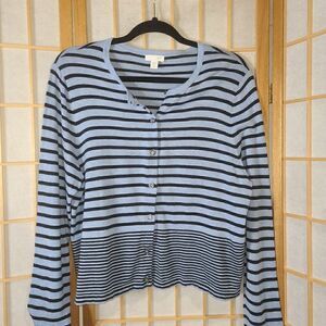 Beautiful, soft, and cozy J. Jill cardigan. Size petite large. 70% cotton, 30% viscose from bamboo. Hand wash. Made in China. Excellent condition. Nonsmoking home.