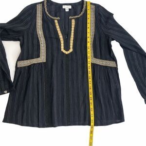 J Jill Peasant Blouse XS Black White Stripe Lace Embroidered Split Neck Top