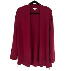 J Jill Side Zip Open Front Cardigan Burgundy Large
