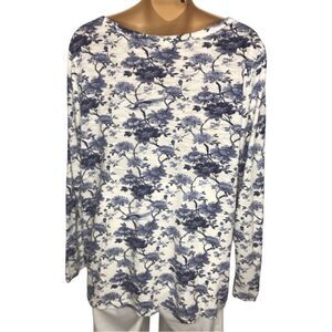 J.Jill White & Blue Floral Long Sleeved Top Size Medium