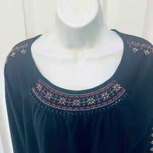 J.Jill-Women's Black/Multi Color Mix-Embroidered Long Puffy Sleeves Boho-Sz. Med