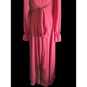 JJ's HOUSE Burgundy Chiffon Bridesmaid Dress in size M is a versatile and elegant option for formal weddings. Featuring a long sleeve and made from luxurious chiffon material, this dress is designed by JJ's HOUSE, a reputable brand known for creating beautiful and high-quality formal attire. The classic burgundy color adds a touch of sophistication to the dress, making it suitable for various special occasions. Made in China, this dress is a stylish and timeless addition to any wedding ensemble. NO SIZE TAG. EXCELLENT CONDITION. MEASURED LAYING FLAT. PTP 18 in. Length 60 in. High waist 15 in.