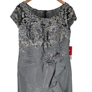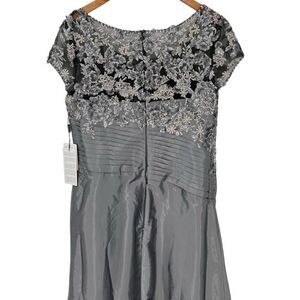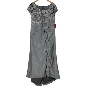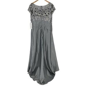 JJ's House A-Line Scoop Sweep Train Taffeta Sequin Evening Dress 18W Grey Silver