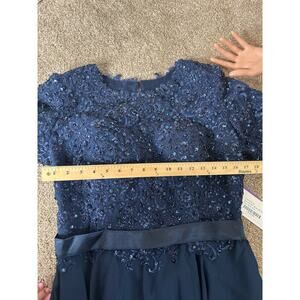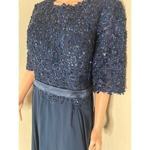JJ's House A-line Boat Neck Illusion Maxi Lace Chiffon Dress Sequins Navy Blue