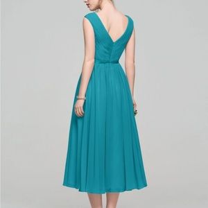 JJs House A-line V-Neck Tea-Length Charmeuse Chiffon Bridesmaid Dress W/ Ruffle