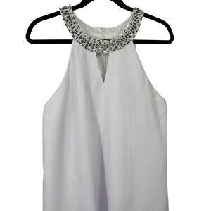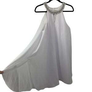 JJs House Beaded Halter Neck Sleeveless Dress Size Large White Chiffon