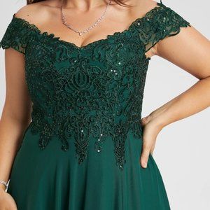 JJ's House Black A-line Sweep Train Long Lace Chiffon Prom Dress Sz 20W 186896