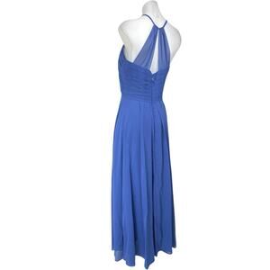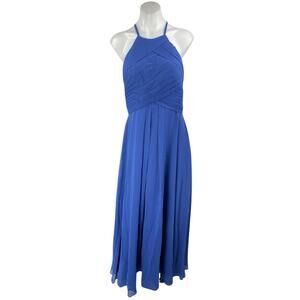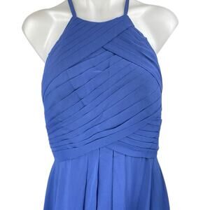 JJ's House Blue Sleeveless Pleated Halter Cami Maxi Bridesmaid A-Line Dress Sz S