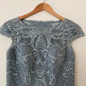 Worn once - bottom edges from hemming frayed (not noticeable, can easily be snipped off)