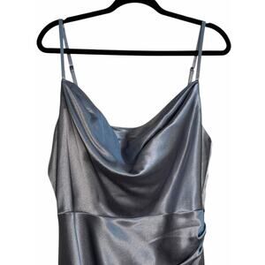 JJ’s House Dusty Blue Metallic Satin Cowl Neck Evening Gown NWT – Size 16W
