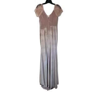 JJ’s House Dusty Rose Velvet Gown Beaded Sleeve Wedding Guest Dress Size 10/12