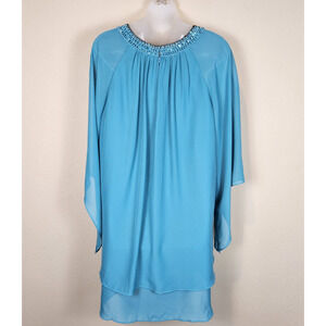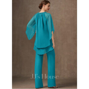 JJs House Frmal Jumpsuit Pantsuit Chiffon Mother Bride Wedding Teal Beaded 22W