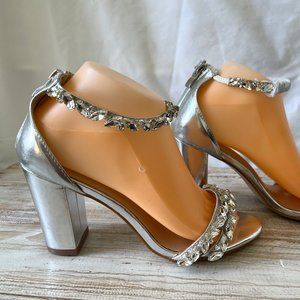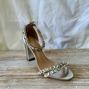 JJ’s House, Gemstone Lined Strapped Heels, Open Toed Sandals, Size 9 New!